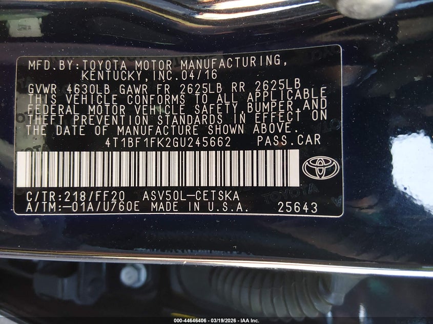 • 4T1BF1FK2GU245662