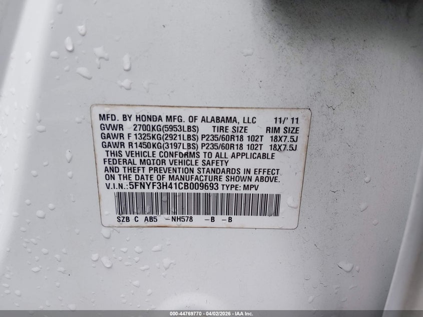 • 5FNYF3H41CB009693