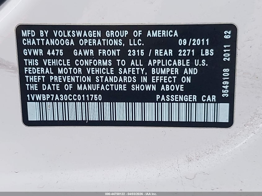 • 1VWBP7A30CC011750