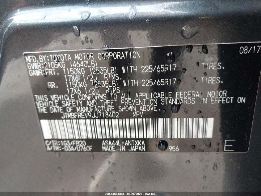 • JTMBFREV9JJ718402