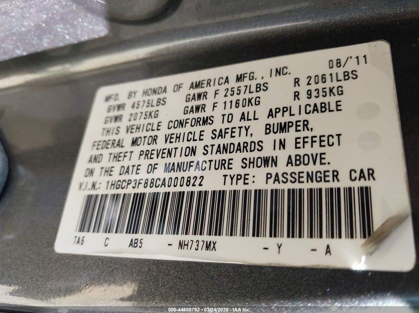 • 1HGCP3F88CA000822