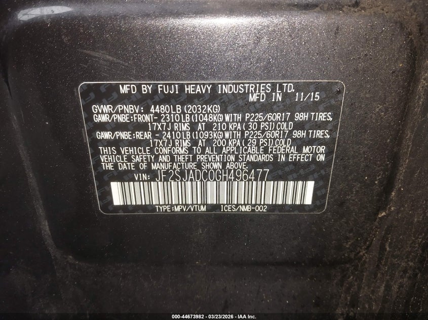 • JF2SJADC0GH496477