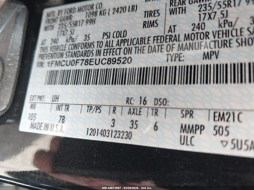 • 1FMCU0F78EUC89520