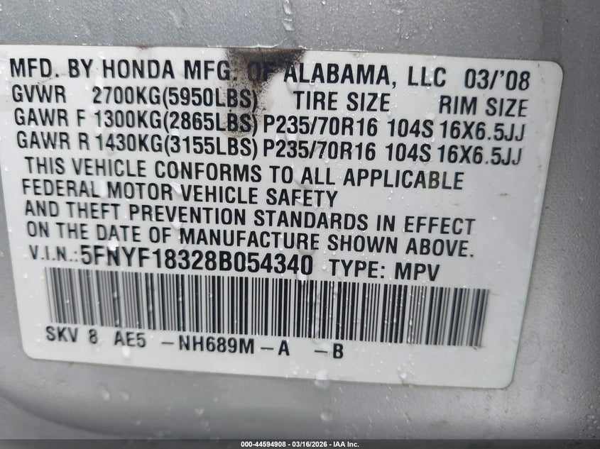 • 5FNYF18328B054340