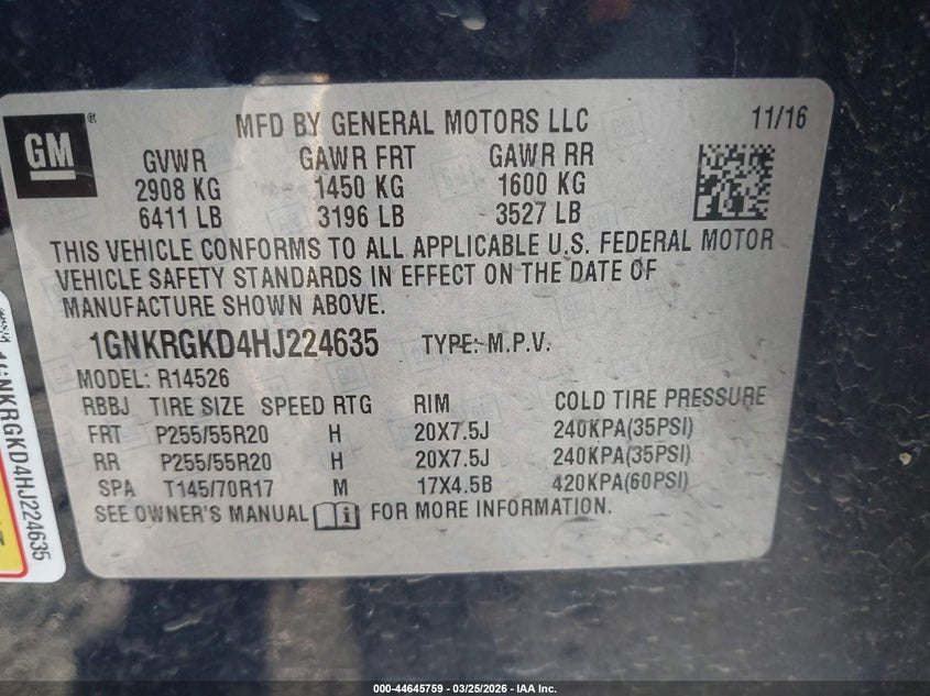 • 1GNKRGKD4HJ224635