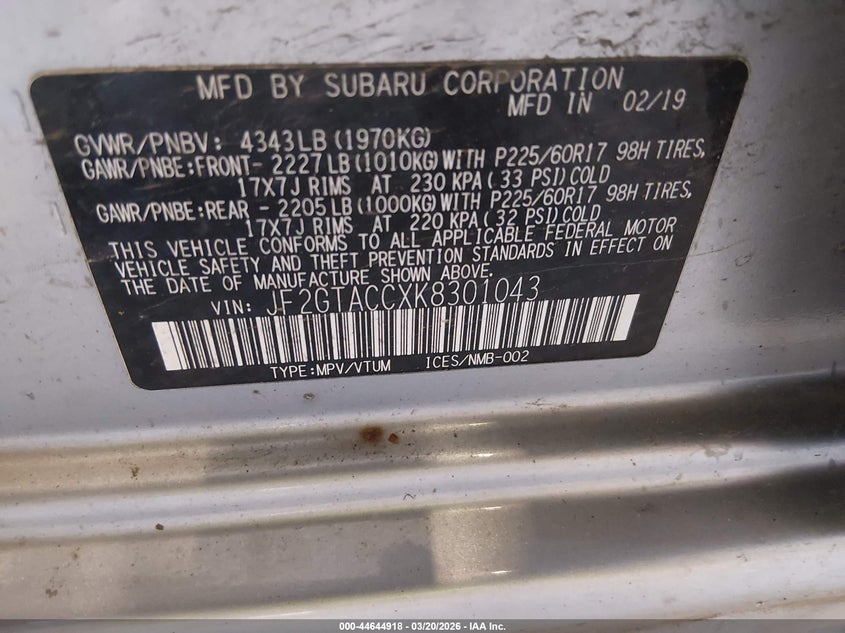 2019 SUBARU CROSSTREK 2.0I PREMIUM for Sale in Chattanooga, TN