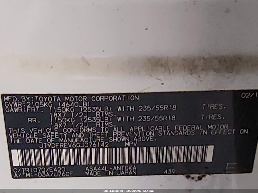 • JTMDFREV6GJ076142