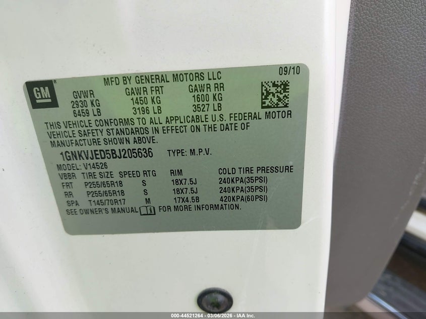 • 1GNKVJED5BJ205636