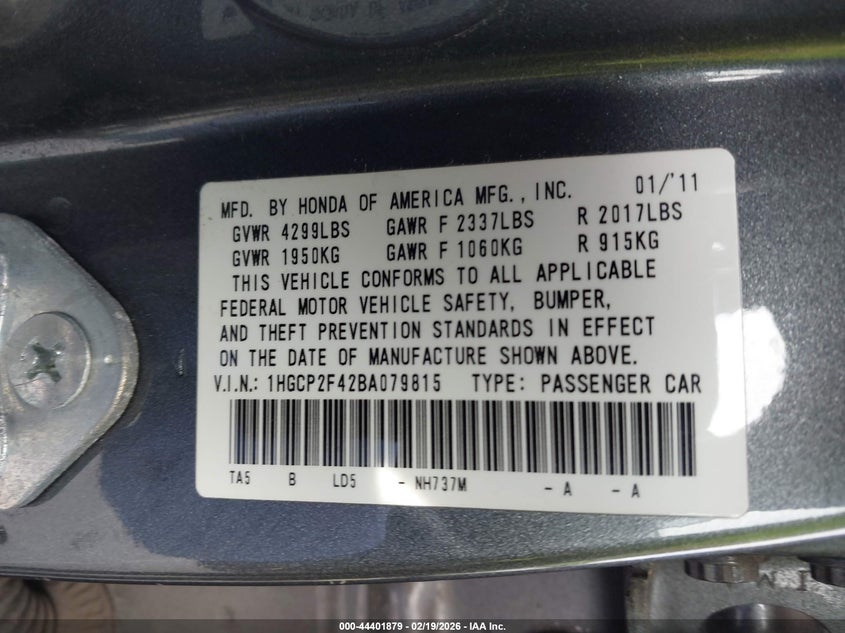 • 1HGCP2F42BA079815