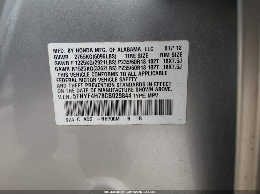 • 5FNYF4H78CB029844