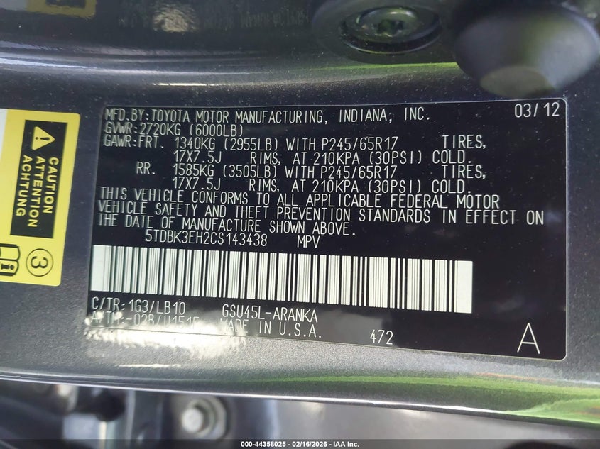 THIS VEHICLE IS BEING SOLD AS 'AS IS - WHERE IS' - ALL BIDS ARE BINDING AND ALL SALES ARE FINAL