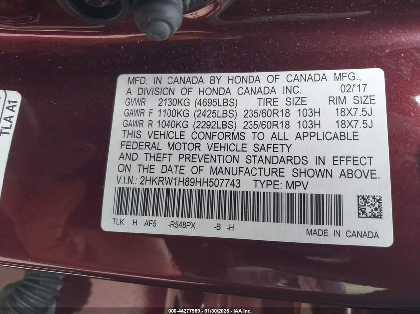 • 2HKRW1H89HH507743