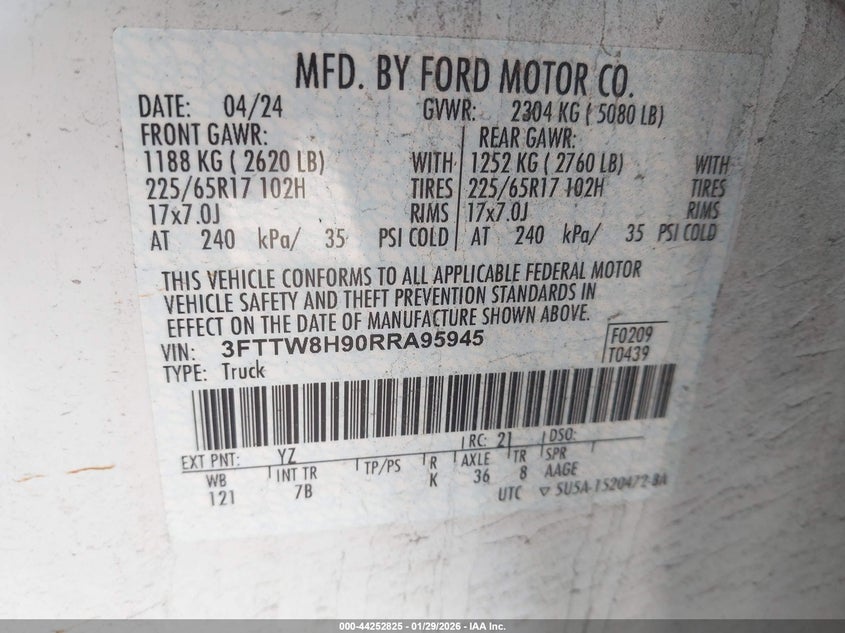 • 3FTTW8H90RRA95945