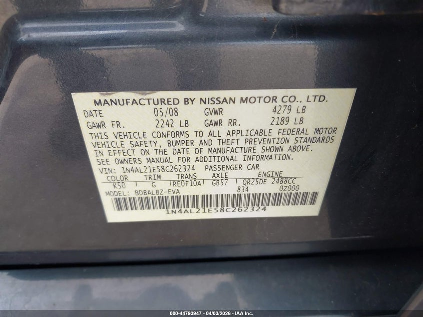 2008 NISSAN ALTIMA 2.5 S for Sale in Aurora, IL