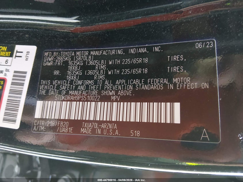 • 5TDKDRAH9PS510022