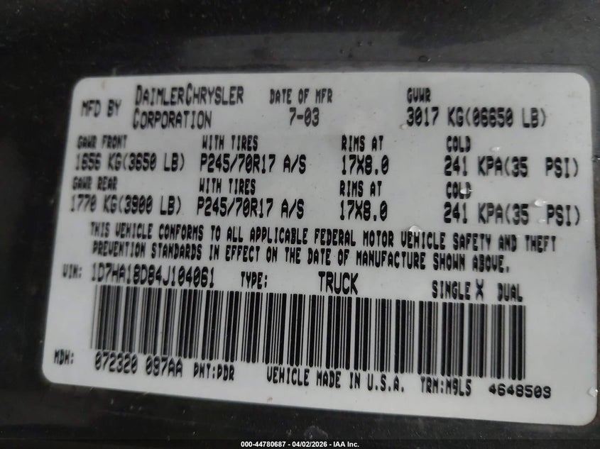 • 1D7HA18D84J104061