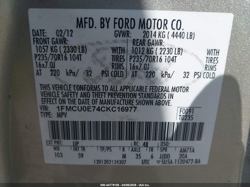 • 1FMCU0E74CKC16977