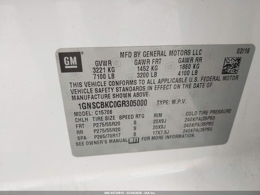 • 1GNSCBKC0GR305000