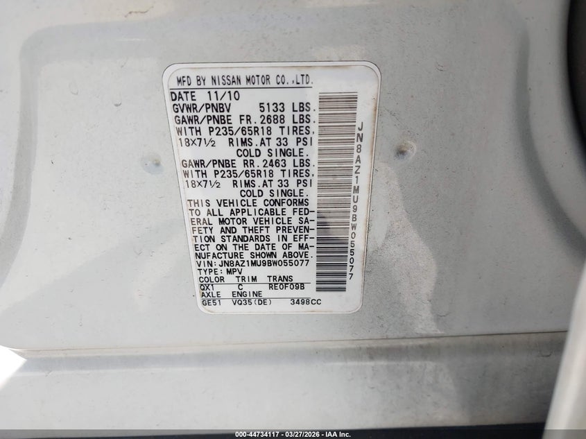 • JN8AZ1MU9BW055077