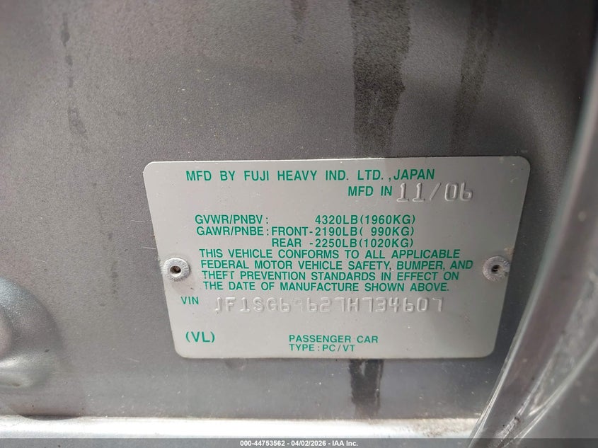 • JF1SG69627H734607