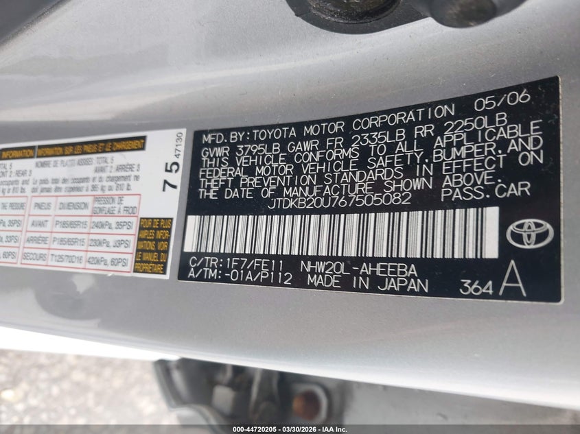 • JTDKB20U767505082