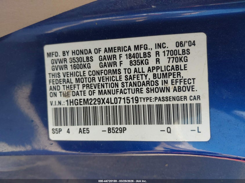 • 1HGEM229X4L071519