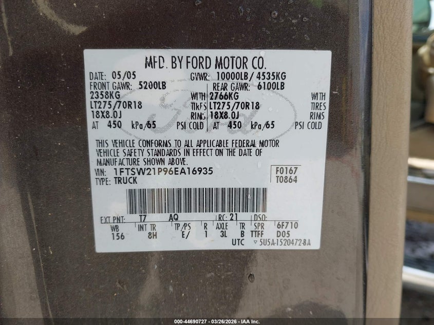• 1FTSW21P96EA16935