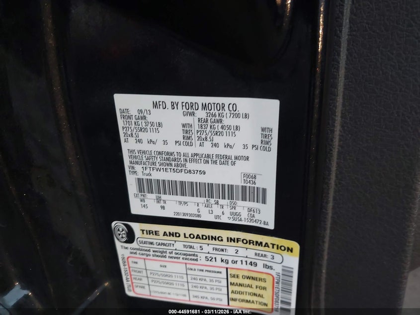 • 1FTFW1ET5DFD83759