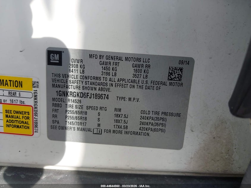 • 1GNKRGKD6FJ189674