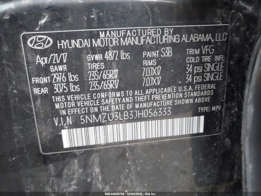 • 5NMZU3LB3JH056333
