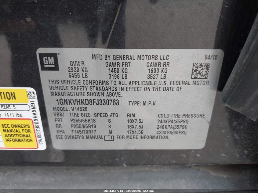 • 1GNKVHKD8FJ330763