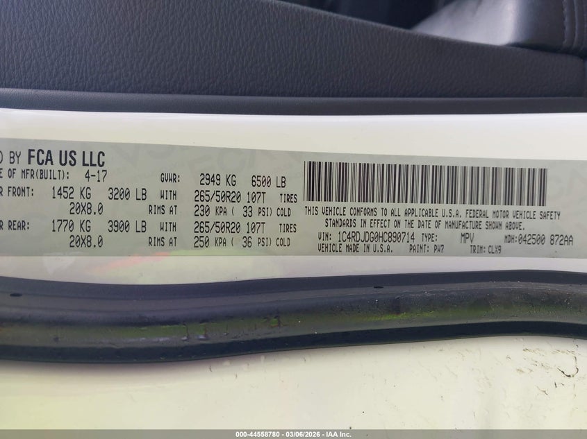 • 1C4RDJDG0HC890714