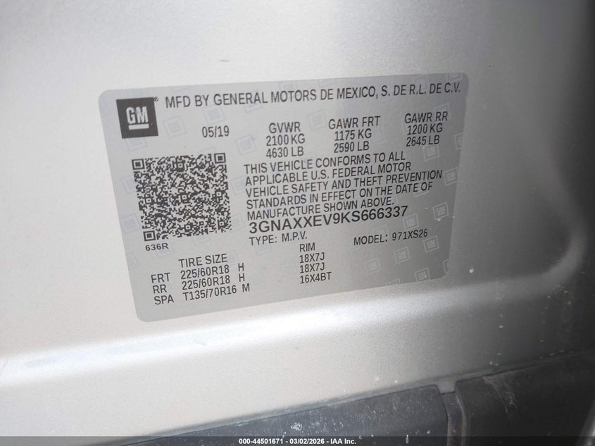 • 3GNAXXEV9KS666337
