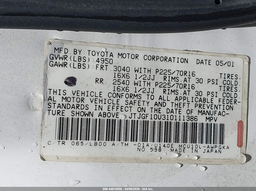 • JTJGF10U310111386