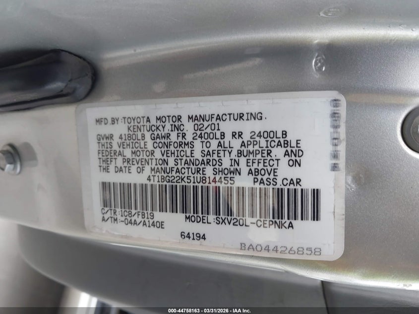 • 4T1BG22K51U814455