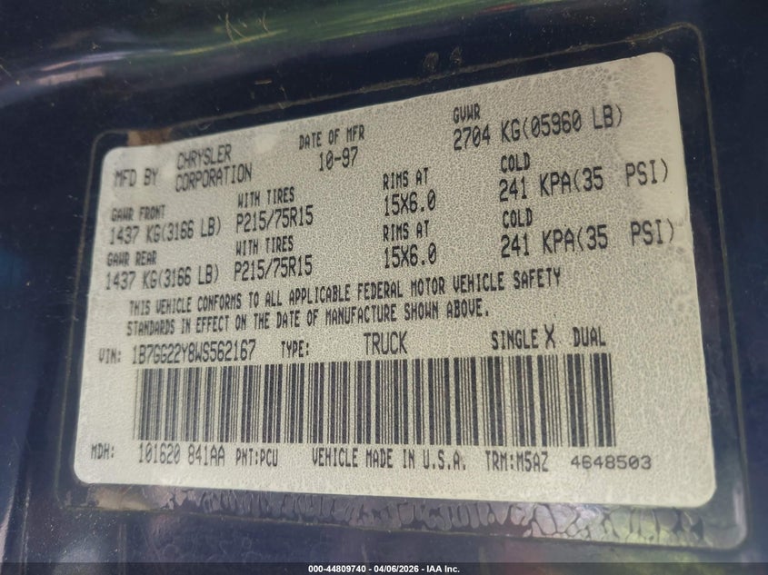 • 1B7GG22Y8WS562167