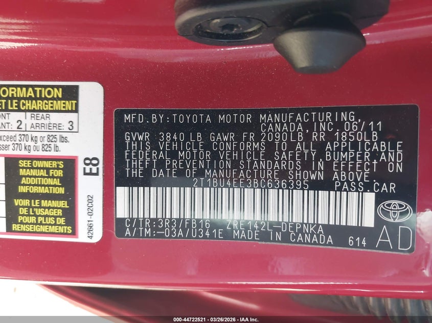 • 2T1BU4EE3BC636395