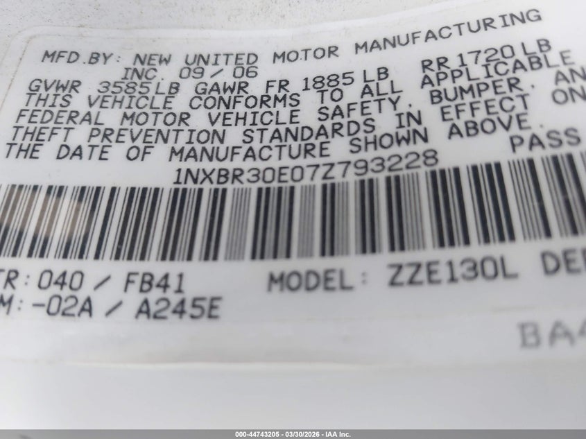 • 1NXBR30E07Z793228