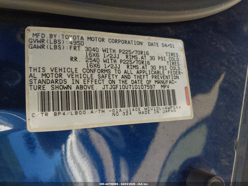 • JTJGF10U710107597