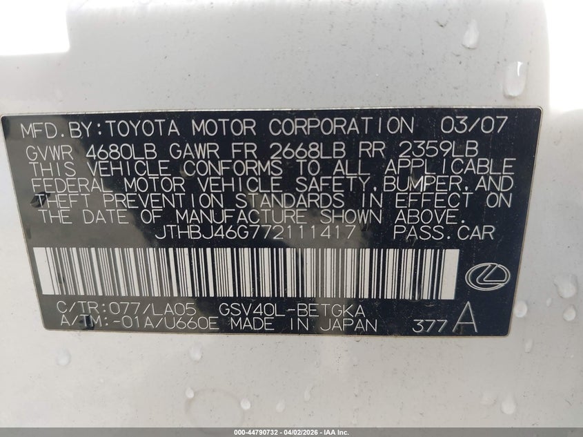 • JTHBJ46G772111417