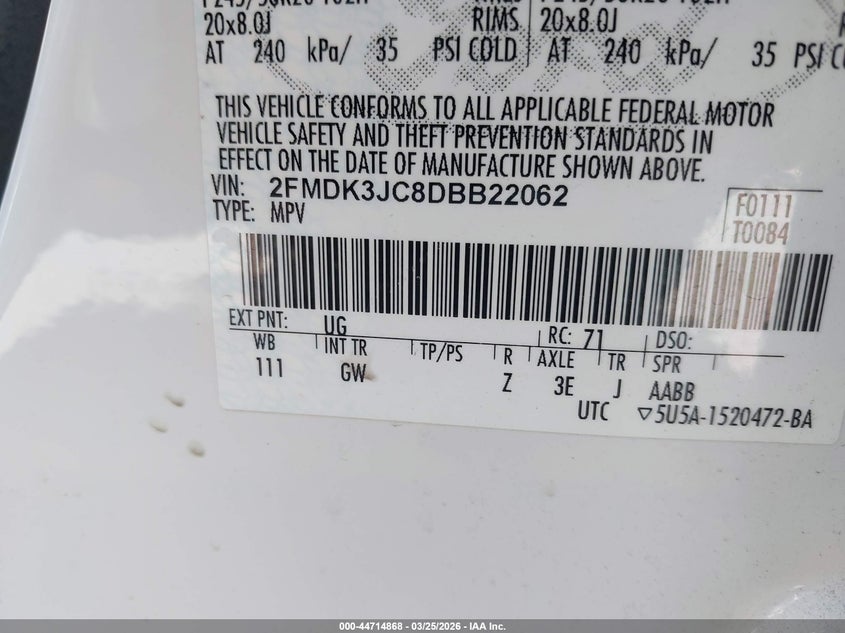 • 2FMDK3JC8DBB22062
