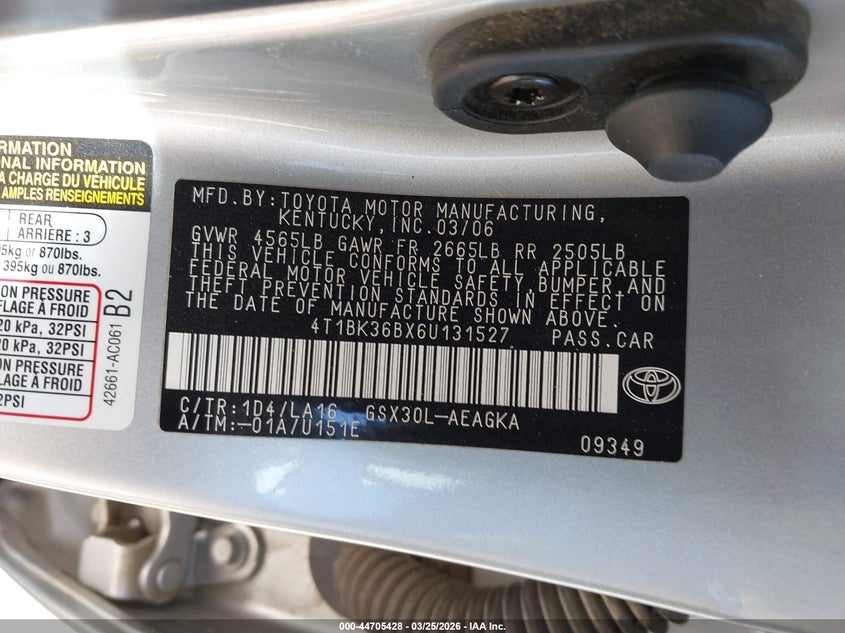 • 4T1BK36BX6U131527