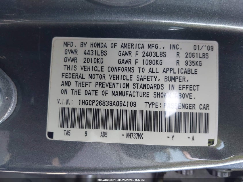 • 1HGCP26839A094109
