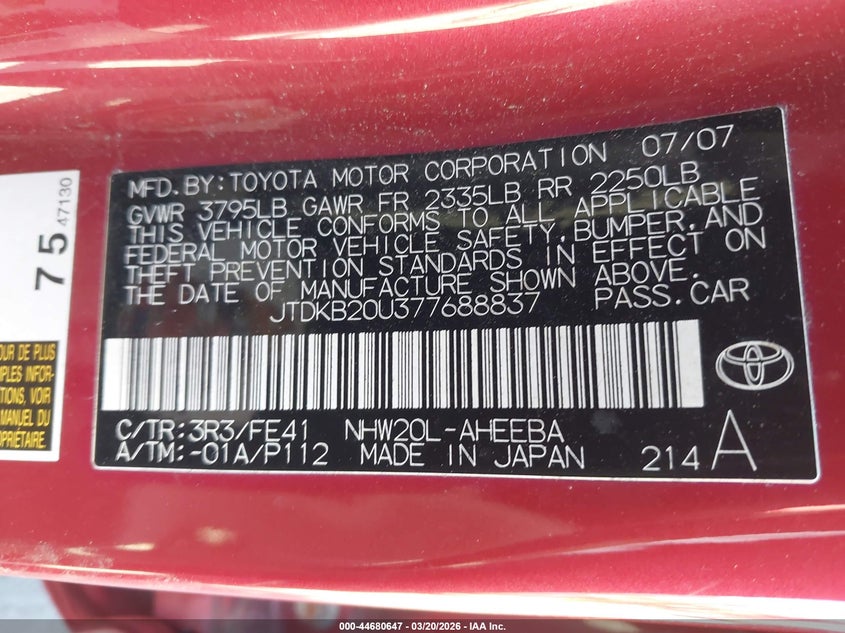 • JTDKB20U377688837