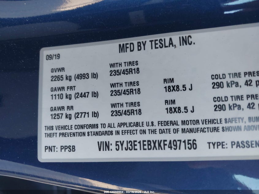 • 5YJ3E1EBXKF497156
