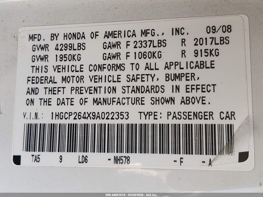 • 1HGCP264X9A022353