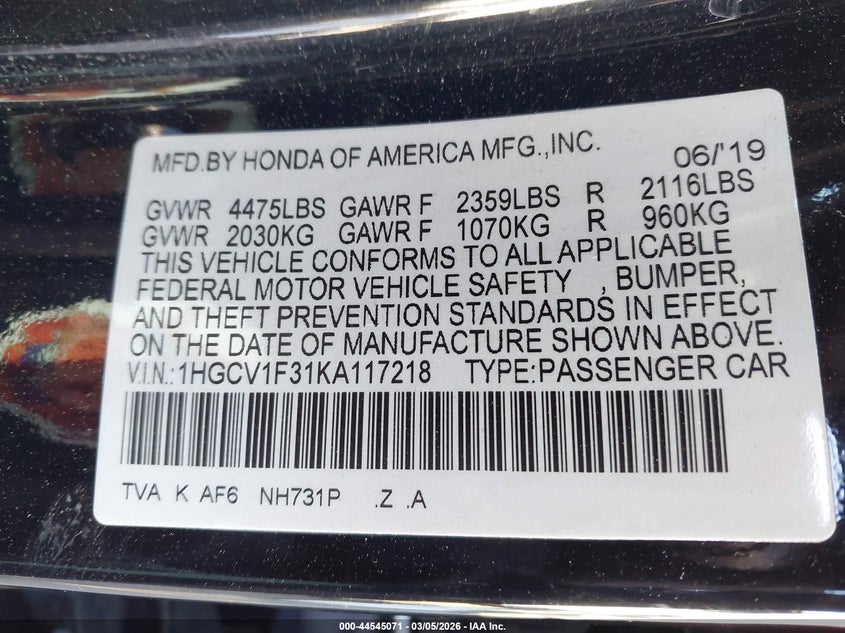 • 1HGCV1F31KA117218
