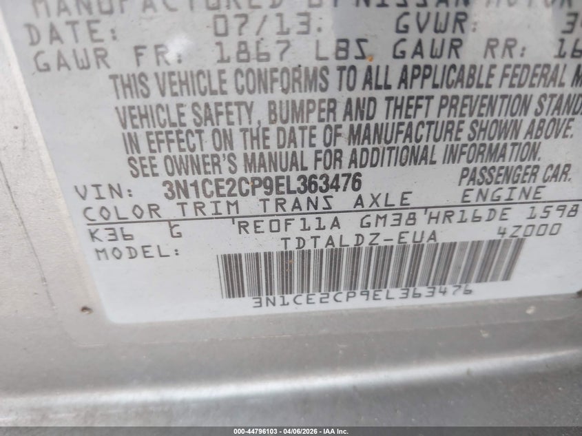 • 3N1CE2CP9EL363476