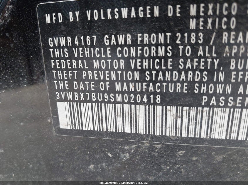 • 3VWBX7BU9SM020418