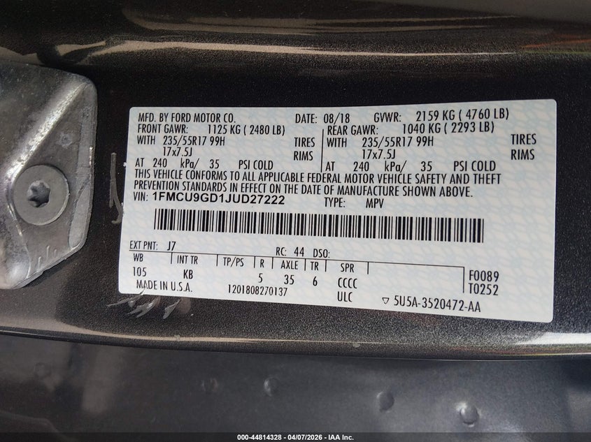 • 1FMCU9GD1JUD27222